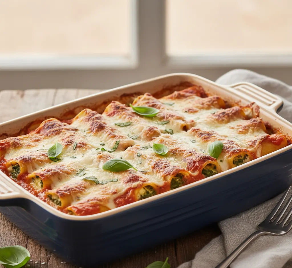 Nežno sirno ali rastlinsko polnilo daje kanelonom strukturo in občutek domačnosti. Takšna kombinacija podpira umirjenost in zadovoljstvo po obroku.