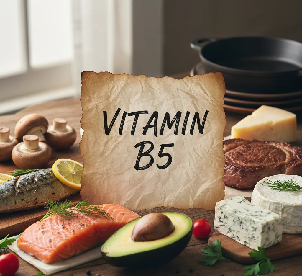 Vitamin B5 oziroma pantotenska kislina je ključnega pomena za energijsko presnovo, tvorbo hormonov, zdravje kože, las, nohtov, kosti in prebavnega sistema. Njegova osrednja vloga pri tvorbi koencima A omogoča, da telo učinkovito pretvarja ogljikove hidrate, maščobe in beljakovine v energijo, obenem pa podpira sintezo steroidnih hormonov, nevrotransmiterjev in rdečih krvnih celic. Pomanjkanje vitamina B5 lahko vodi do utrujenosti, razdražljivosti, motenj spanja, prebavnih težav in oslabljenega imunskega sistema, medtem ko redno uživanje sveže, ekološke hrane ali dodatkov zagotavlja optimalno energijsko presnovo in dobro počutje. Ker se vitamin B5 v telesu ne shranjuje, je nujno zagotoviti stalni vnos, predvsem z živili, kot so polnozrnata žita, avokado, jajca, stročnice in zelenolistnata zelenjava. Skrb za zadosten vnos pantotenske kisline je torej ključna za splošno zdravje, vitalnost in odpornost telesa.