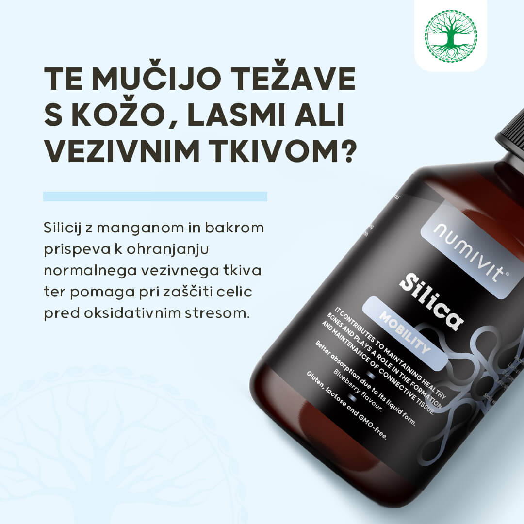 A to še ni vse! Oslabelo vezivno tkivo se lahko kaže kot oslabljen tonus kože, krhki nohti, manj elastični sklepi ali slabša regeneracija po naporu. Vzrok je lahko v pomanjkanju podpore iz osnovnih gradnikov, med katerimi ima silicij pomembno vlogo.
